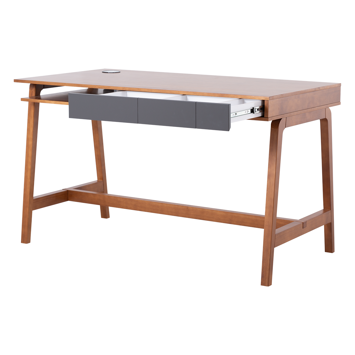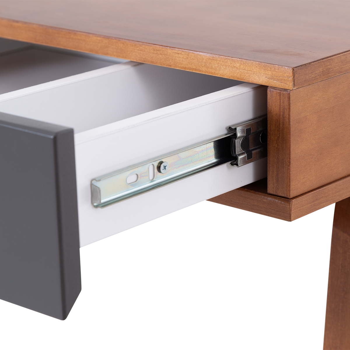 Secretária de madeira para computador. Moderno e limpo, cabe bem no escritório, no escritório em casa, no quarto como mesa de vestir ou mesmo como aparador na sala de estar. A secretária Mandal oferece-lhe um tampo de trabalho generoso, espaço de armazenamento suficiente bem como uma gaveta generosa e ainda um espaço aberto para papelaria.
